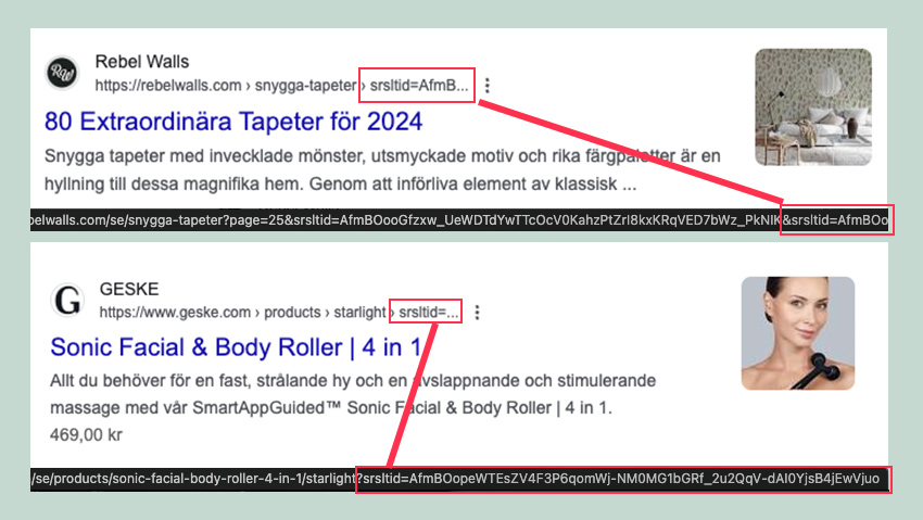 Även fast Google säger att det inte är ett problem att srsltid-parametern är med i organiska sökresultatadresser kan det ändå finnas fall då det gör det: