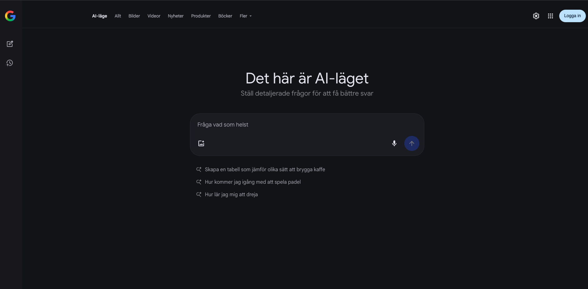 När AI Mode har aktiverats ser du en ny flik längst till höger i Googles sökfält. Där kan du välja att gå in i AI-läget och ställa frågor direkt till Googles AI. Funktionen är tillgänglig både via dator och mobil, men upplevelsen kan variera något beroende på enhet.